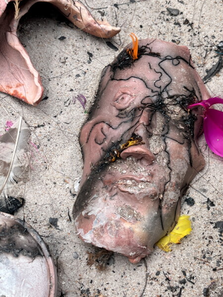Once things were hot enough, in goes a little iron oxide powder for added effect. Once pottery is carefully moved to a cooling station, it can be altered and decorated with feathers or horse hair. There’s a temperature range ‘sweet-spot’ that allows hair to imprint thin, random lines without instantly burning off. Students grab a glove and mash hair against the surface of their piece. The results are nearly always surprising and satisfying.